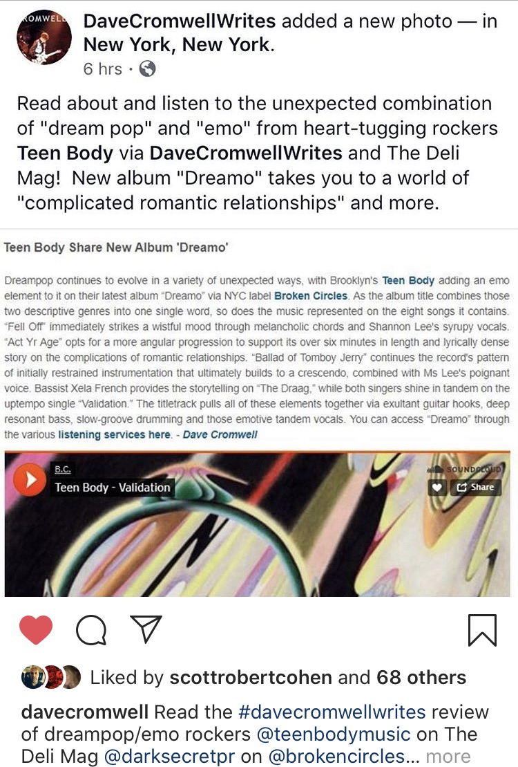 Dreampop continues to evolve in a variety of interesting and often unexpected ways. Brooklyn's Teen Body has taken this classic staple of introspective rock and added an emo element to it all. The results are quite intoxicating on their 2019 released album “Dreamo” via NYC label Broken Circles.